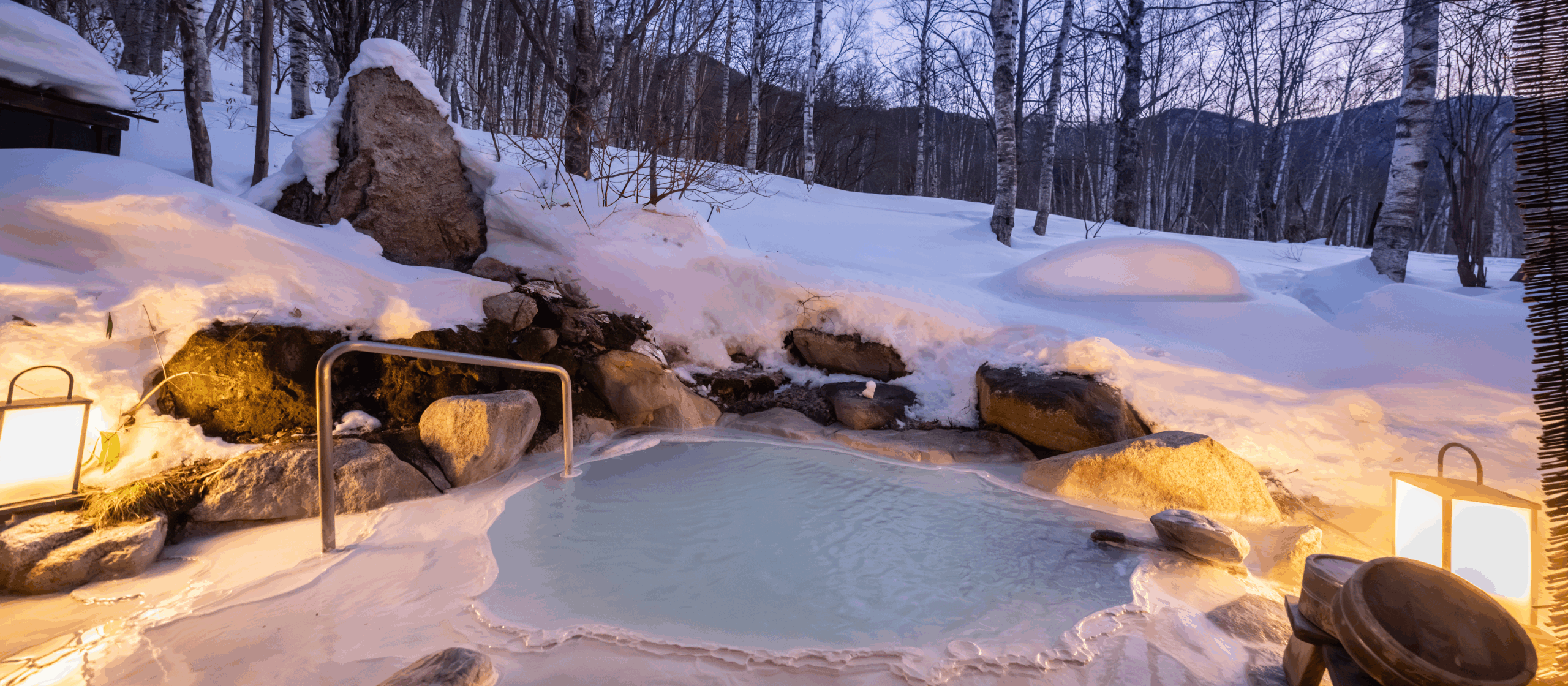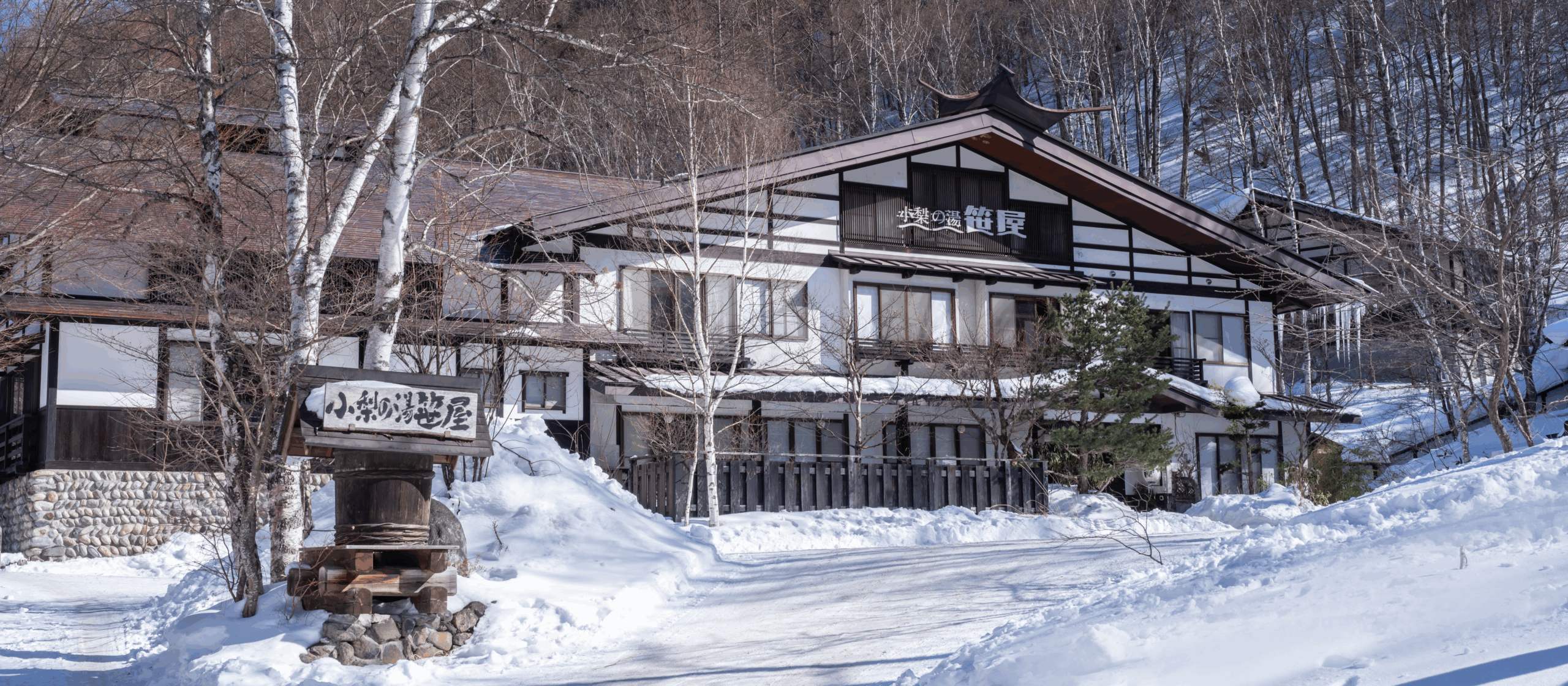 白樺林に囲まれた男女それぞれの内湯と、白骨温泉では数少ない貸切露天風呂で、
