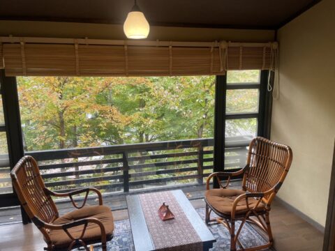 離れの霞沢、十石のお部屋からはお写真のような紅葉が望めます。